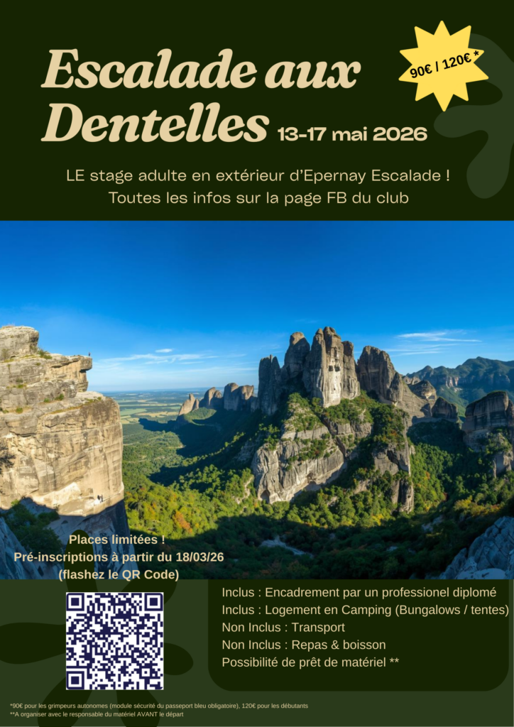 20 places pour grimpeurs autonomes (sans encadrement) licenciés au club d’Épernay Escalade.